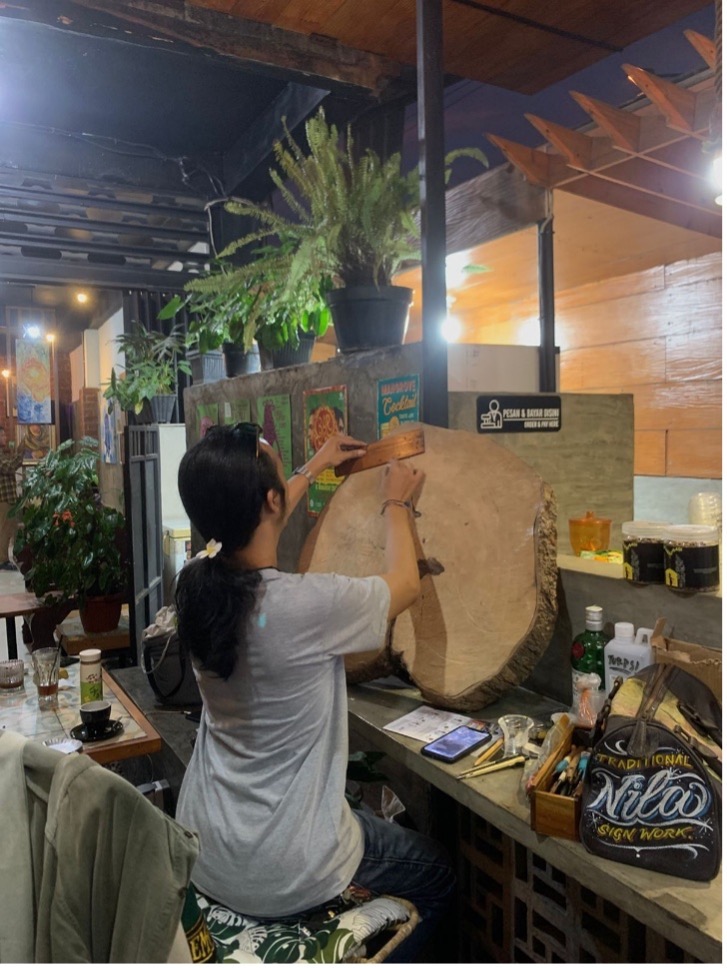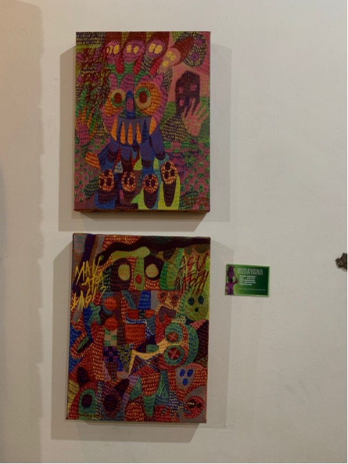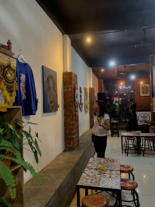 Salah satu momen paling menarik adalah sesi live painting di atas media balok kayu oleh Ketut Sedana yang menampilkan proses kreatif secara langsung kepada audiens dan mendorong interaksi yang dinamis antara seniman, karya, dan pengunjung.