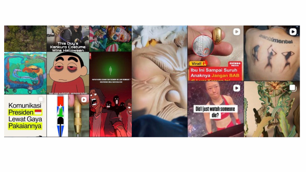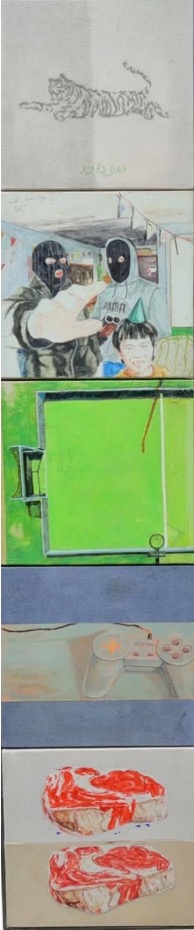 Seperti karya di bawah yang menangkap prilaku media sosial yang membentuk cara kita memproduksi memori visual, dengan menempatkan beberapa gambar acak yang tersusun secara vertikal, layaknya timeline feed instagram yang memanjang tanpa ujung. Ia mengingatkan kita betapa tak berurutannya informasi yang sebenarnya kita terima, namun pada kenyataannya ia terhubung dalam satu algoritma yang kita ciptakan sendiri.
