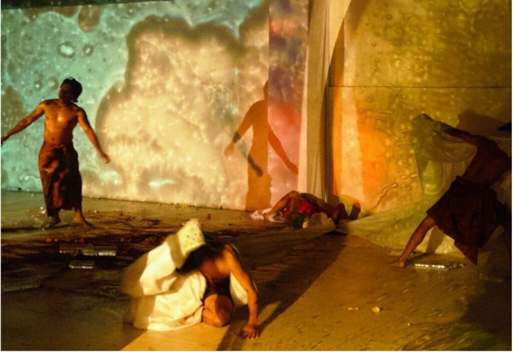 Kita lalu seakan disentil tentang bagaimana buruknya pemerintah dalam menata insfratuktur air yang ada di kota ini, pun didukung dengan sampah plastik saling bermuara di hulu sungai-sungai yang merupakan ulah dari masyarakat juga. Visual Mapping pada karya ini juga menjadi poin penting, dimana bayangan air yang diproyeksikan melalui alat yang dikendalikan oleh Ketut Sedana, dan Darklab Visual Art pun berhasil menghadirkan dimensi visual yang begitu kuat, seperti mengingatkan kembali akan bencana yang begitu nyata.