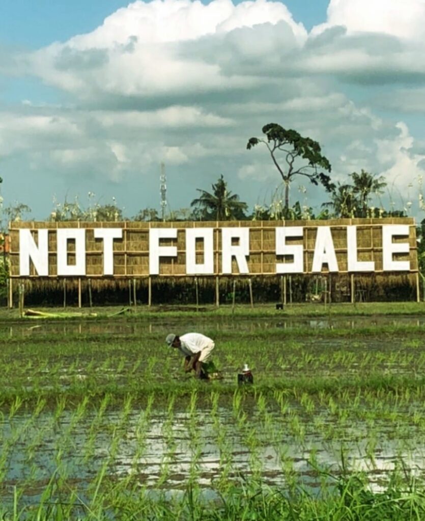 “Not For Sale” menjadi ruang renungan publik, sebuah penanda batas. Instalasi ini mengingatkan bahwa Bali sedang kehilangan ruang fisik sekaligus ruang digital. Seni ini menyuarakan realitas: