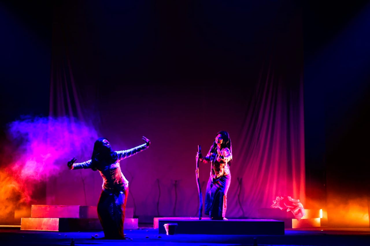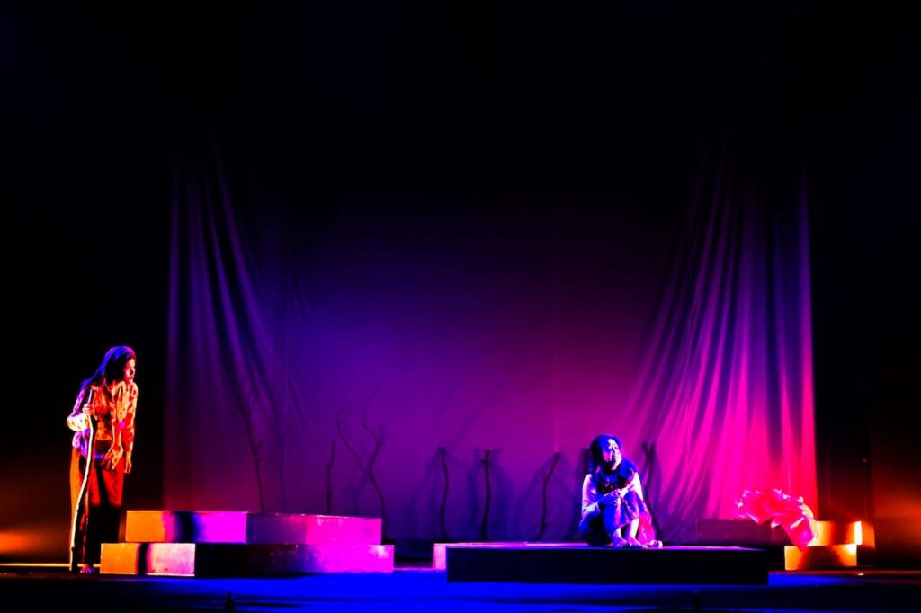 Di atas panggung, tubuh-tubuh para performer, Kadek Cinthya Ayu Bestari, Ni Putu Ayu Puspita Dewi, dan Kanahaya Elang Semesta, menjadi bahasa utama. Kata-kata ada, tetapi bukan satu-satunya alat bicara.