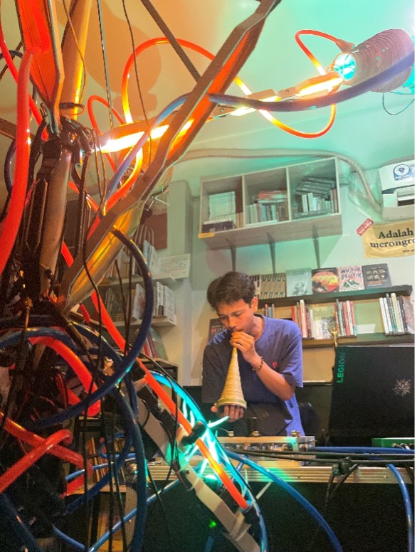 “Pas performnya, sound dan penampilan dari instalasinya mengingatkan ke fenomena bis telolet dengan segala suara dan lampu-lampunya juga. Tapi enggak tahu apakah ada mengarah ke situ juga atau enggak,” ungkap Hajar.