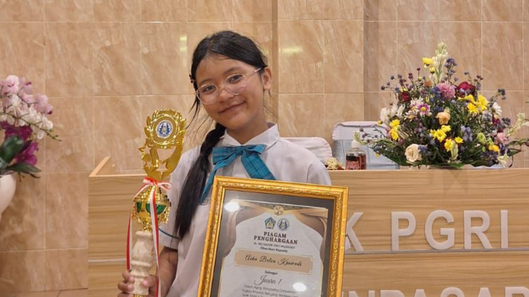SEDIKIT genangan air tampak di pelupuk mata. Raut wajahnya berubah setelah mendengar namanya disebut sebagai peraih juara kelas. Aiko Belva Kaswadi (13), akrab disapa Aiko, siswi kelas VIII di SMP PGRI 8 Denpasar (Griasta), berhasil meraih peringkat pertama pada akhir semester ganjil tahun ajaran 2025/2026 setelah melewati berbagai rintangan dan persaingan di kelas.