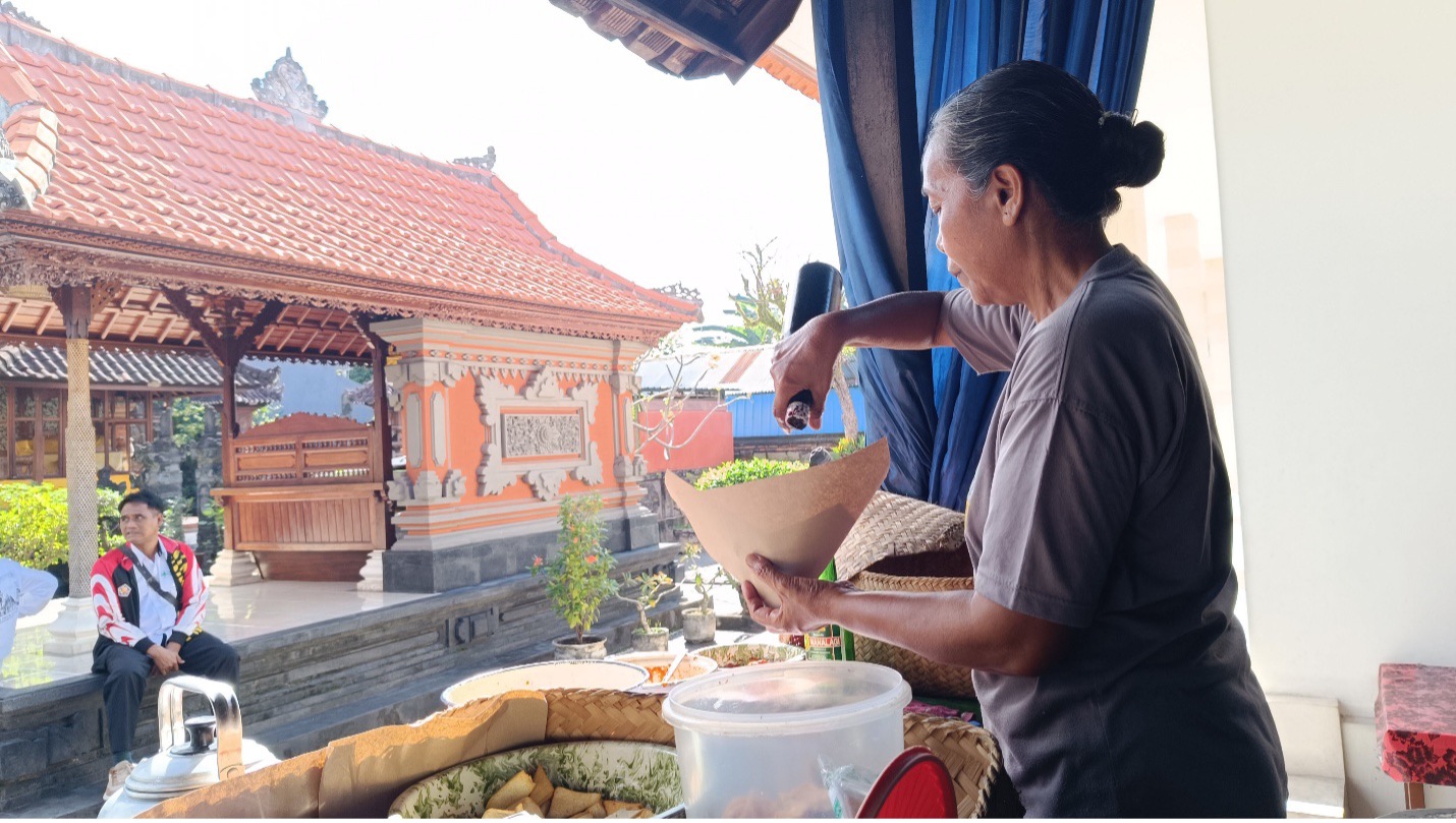 LANGIT masih gelap ketika aroma kayu bakar mulai menyelinap dari sebuah dapur sederhana di Banjar Gelulung, Sukawati, Gianyar. Matahari belum membuka matanya, tapi Ni Wayan Murni sudah lebih dulu terjaga. Dengan kaus oblong dan rambut terikat rapi, perempuan paruh baya itu memulai ritual yang diwariskan turun-temurun: menyalakan api, menakar bumbu, dan meracik kenangan dari generasi silam.