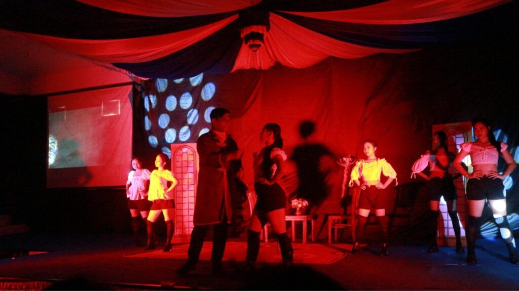Begitu lampu meredup, panggung menjelma ‘Daratan Rosea’. Tata cahaya bekerja rapi. Kostum tampil berani, penuh warna dan detail. Musik mengalun tanpa tergesa. Penataan panggung menunjukkan keseriusan yang tak lazim untuk ukuran teater sekolah yang baru memulai.
