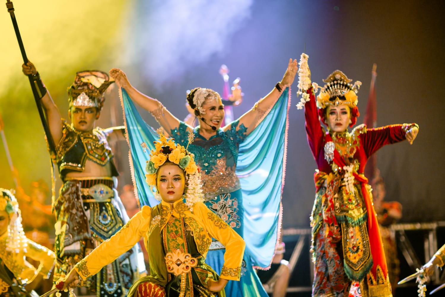 Buummm! Waktu seolah berhenti. Para penari mematung pada pose terakhirnya. Terbagi dalam kelompok kecil, dua sampai tiga penari. Ada yang berdiri dan jongkok setengah badan.
