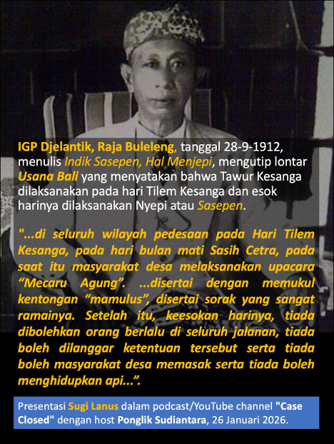 Tadi siang saya diundang bercakap di podcast/YouTube channel “Case Closed” terkait dengan hari Nyepi yang konon ingin dipindahkan ke hari Tilem Kesanga atau dimajukan sehari.