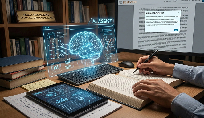 Di dunia akademik, orisinalitas ialah mata uang yang sakral. Ketika AI ikut campur dalam menyusun kalimat, sebuah kontrak sosial antara penulis dan pembaca terancam retak. Maka, transparansi menjadi jembatan. Elsevier mewajibkan adanya pernyataan pengungkapan (disclosure statement). Ini bentuk kejujuran intelektual. Kita harus berani berkata: “Di titik ini, mesin membantu saya.” Tanpa transparansi, sains akan kehilangan ruhnya sebagai pencarian kebenaran yang jujur.
