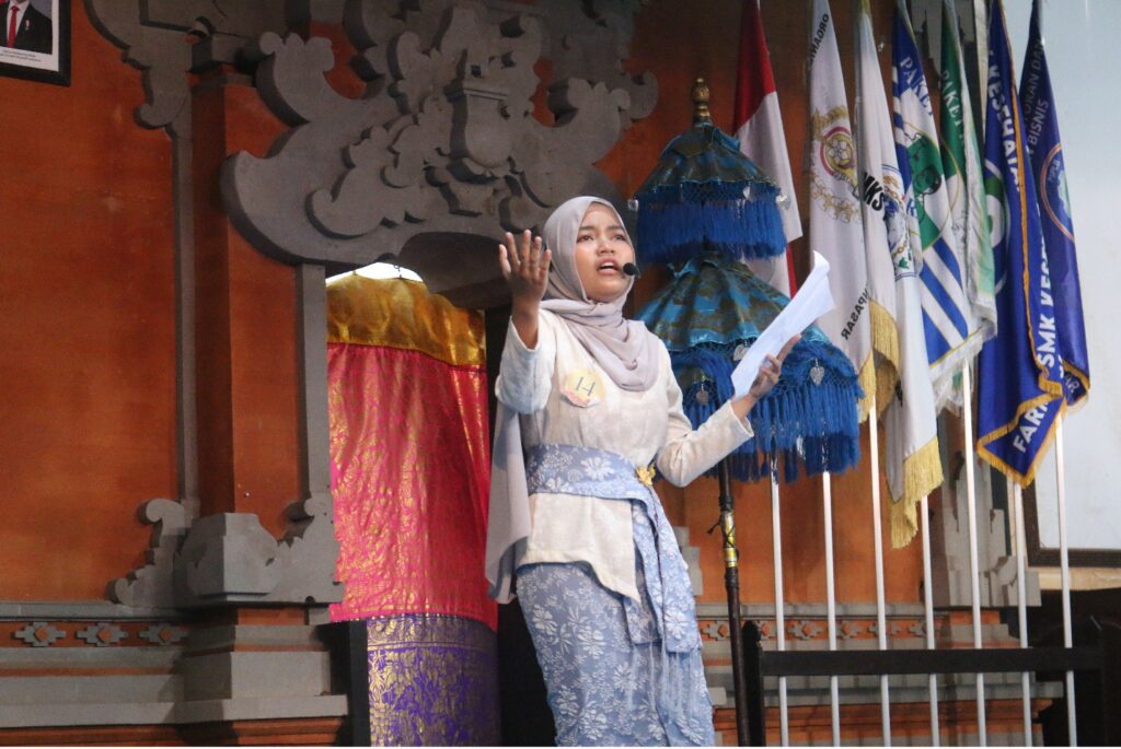 Peserta lain, Ni luh Nagita Putri dari kelas XI Keperawatan & Caregiving (KC 3), memilih puisi ‘Ampura Meme’. Baginya, puisi tersebut memiliki makna personal.