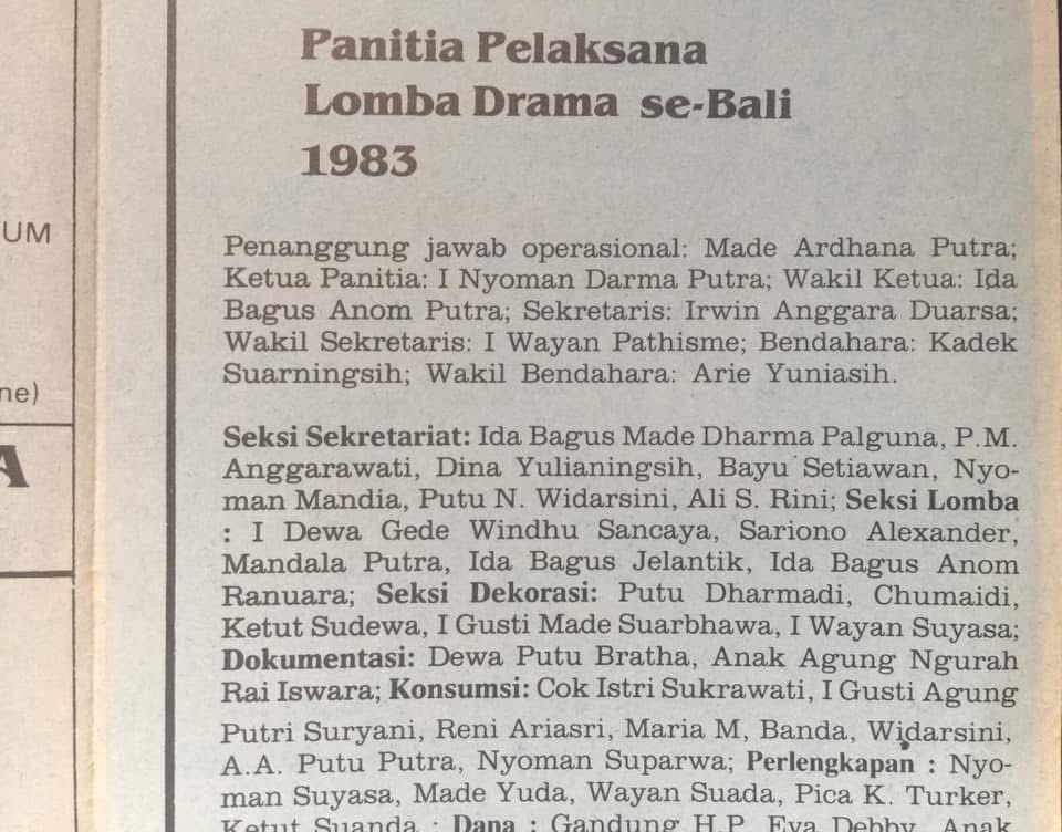 Darma Putra juga mengingat kembali relasi personal dan historisnya dengan Sanggar Putih. Ia merupakan Ketua Panitia Lomba Drama Modern Fakultas Sastra Universitas Udayana tahun 1983. Dalam ajang tersebut, Sanggar Putih berhasil meraih juara II, sedangkan juara I diraih oleh Sanggar Nyuh Gading.