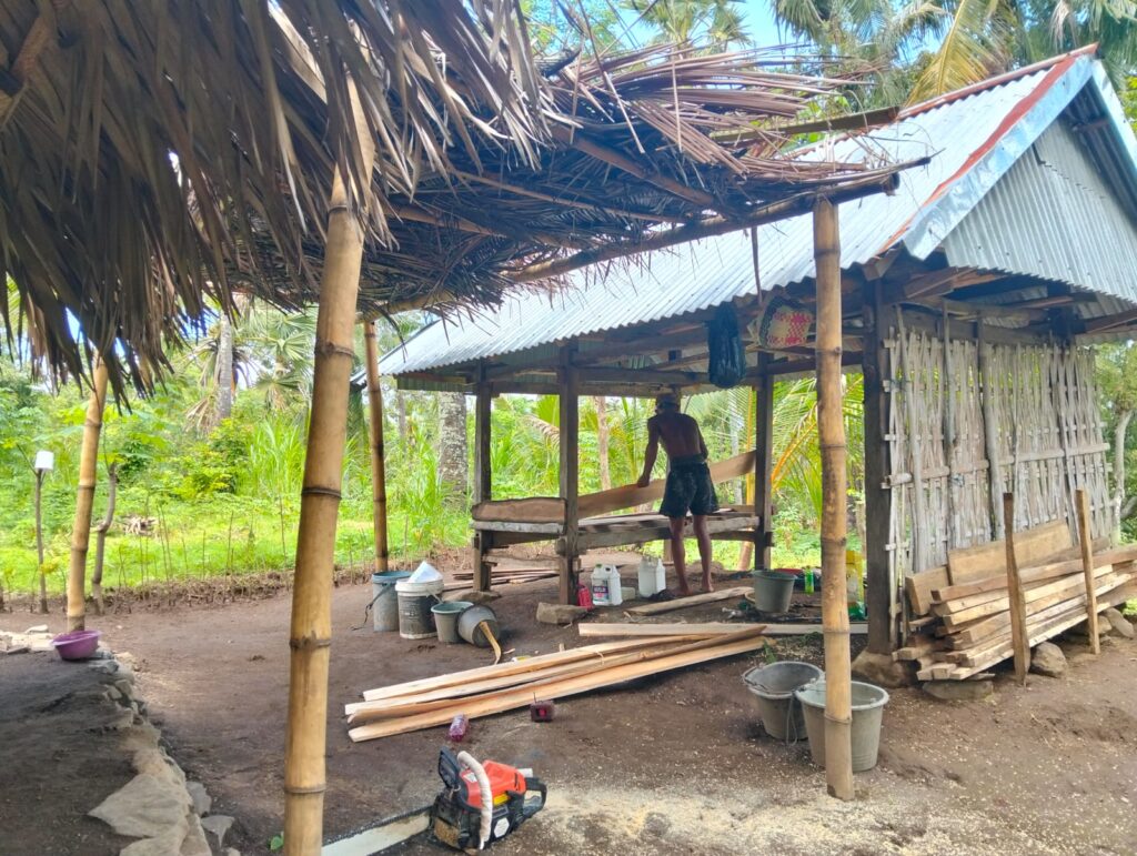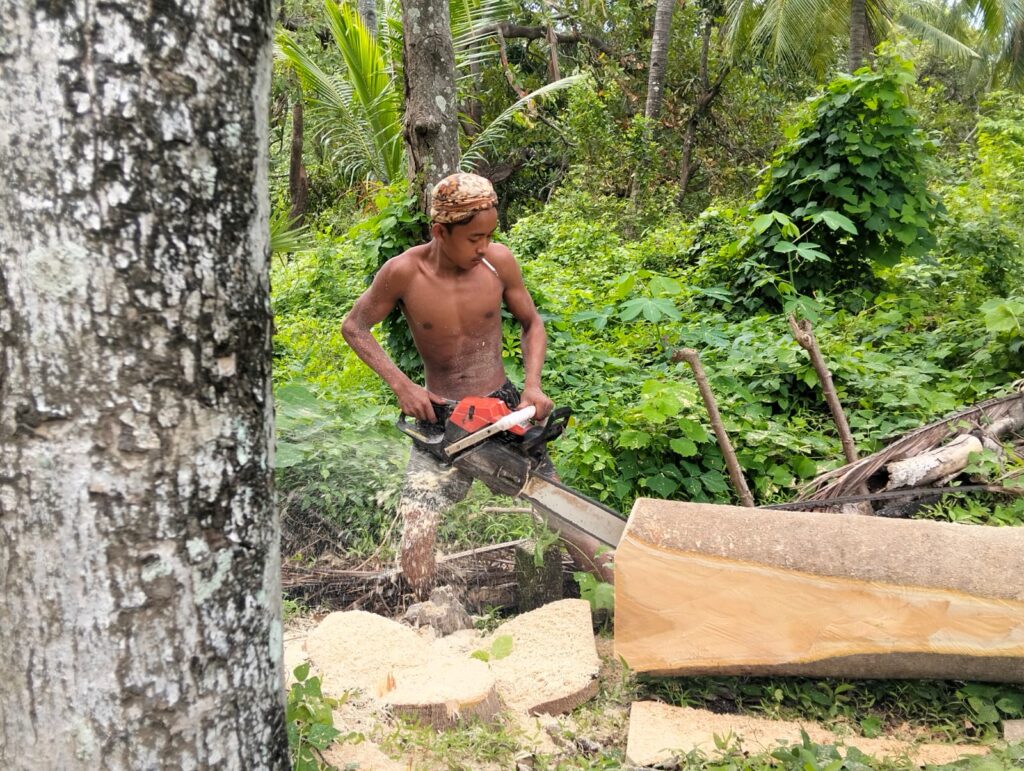 “Sebenarnya lumayan kalau diambil.” katanya. “Memotong pohon kelapa untuk dijadikan papan, permeter ongkosnya bisa 35 ribu.”