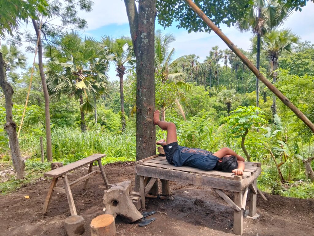 Seperti kata seorang pemandu wisata lokal, Komang Putra. Ia datang 40 menit yang lalu. “Orang-orang di sini wataknya itu, kalem.” katanya. “Mereka lebih banyak mengambil pekerjaan yang simpel dan tidak ribet.”