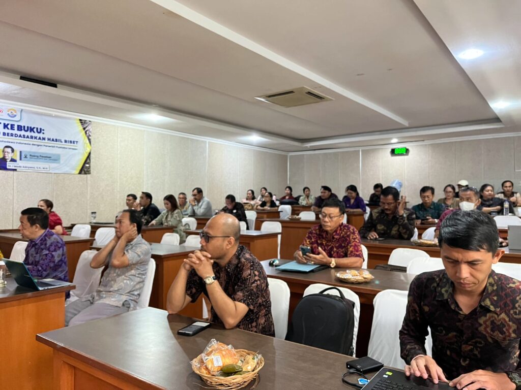Workshop yang dipandu moderator Dr. I Made Adnyana, S.H., M.H. itu juga memberikan pesan khusus bagi mahasiswa. Skripsi yang mereka kerjakan tidak seharusnya menjadi “sampah arsip”. Dengan bimbingan dosen dan kolaborasi bersama editor profesional, skripsi dapat dikonversi menjadi buku yang memberikan kebanggaan intelektual sekaligus manfaat praktis bagi masyarakat luas. Namun, Slamat mengingatkan bahwa proses ini bukanlah jalan pintas; revisi mendalam adalah syarat mutlak agar kualitas tetap terjaga.