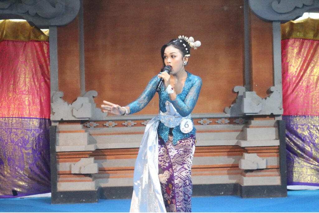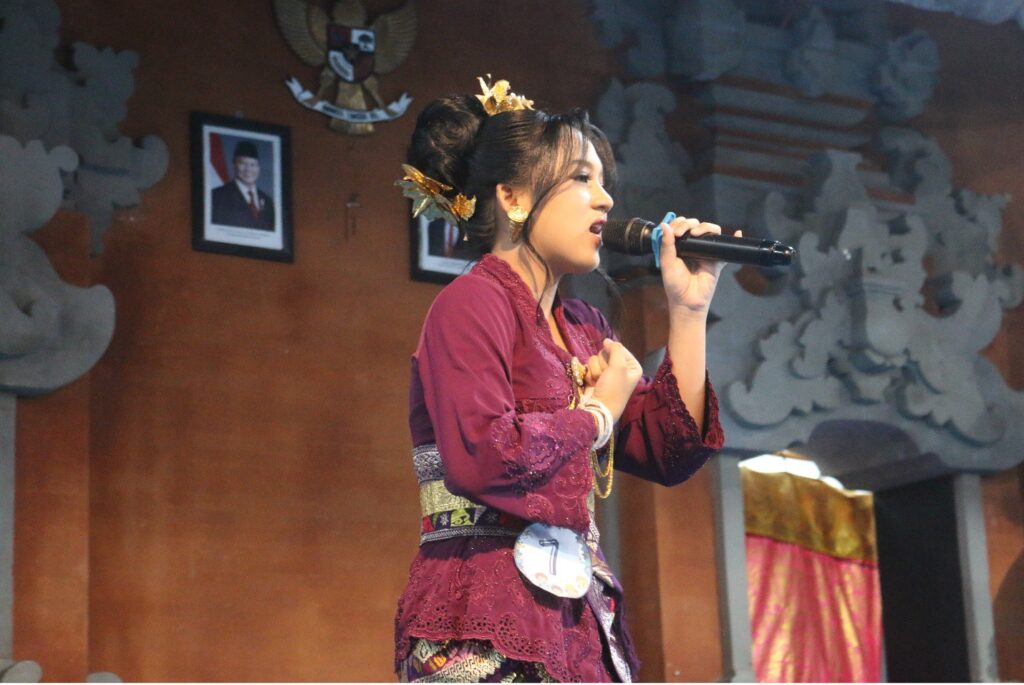 Satu per satu peserta naik ke panggung. Ada yang tampil dengan penuh penghayatan, memaksimalkan dinamika lagu. Ada pula yang menunjukkan kekuatan teknik vokal dengan cengkok khas pop Bali. Busana yang dikenakan pun beragam, mulai dari sentuhan modern hingga nuansa adat Bali yang dipadukan secara kreatif.