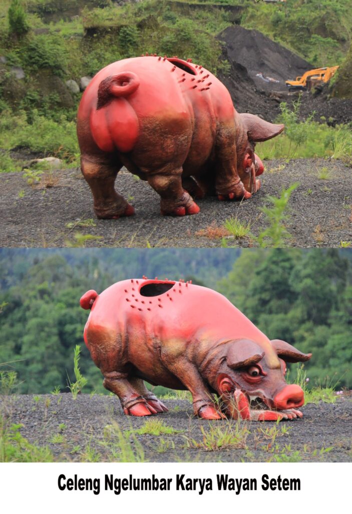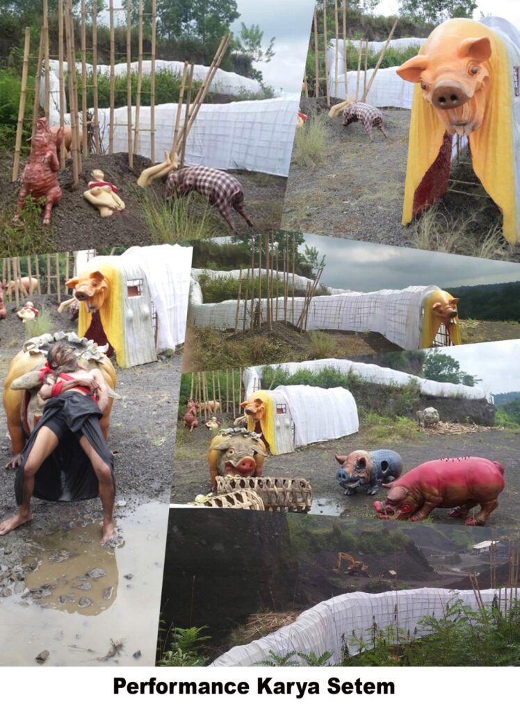 Untuk itu, Setem pernah menggelar seni pertunjukan/instalasi bertajuk “Celeng Ngelumbar” di desanya, selat – karangasem. Ini adalah judul sebuah karya seni disertasi doktoral karya Setem saat studi di ISI Surakarta. Tajuk ini bisa berarti “Babi Mengamuk/Menggila” dan digunakan sebagai metafora untuk menggambarkan penambangan pasir yang eksploitatif dan dampaknya terhadap sosial-ekonomi masyarakat, sering kali dengan kritik terhadap keserakahan dan kehancuran lingkungan yang terjadi.