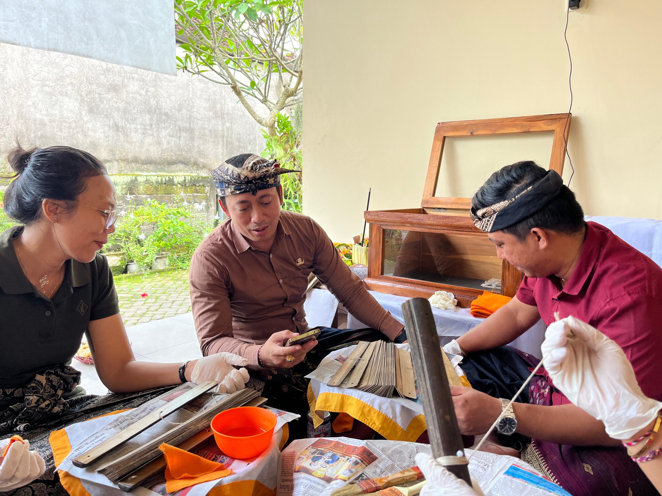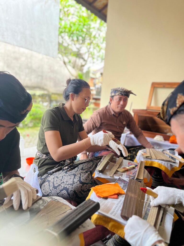 Sebagai langkah pelestarian, tim penyuluh membersihkan debu dengan kuas halus dan mengoleskan minyak sereh untuk menjaga daya tahan daun lontar dari serangan rayap (ngenget). Edukasi perawatan juga diberikan agar koleksi tersebut tidak rusak dimakan usia.