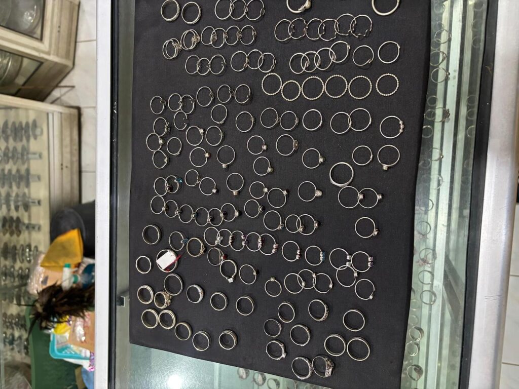 “Saya sudah sekitar 33 tahun menjadi pengrajin perak. Awalnya dari ibu saya tukang emas, lalu bertemu dengan Bapak saya. Dari situlah saya mencoba membuka usaha ini. Dulu hanya memiliki satu rak untuk memajang perhiasan, kemudian usaha ini terus berkembang. Banyak teman-teman yang datang membeli perhiasan, hingga akhirnya bisa menjadi seperti sekarang,” ujarnya.