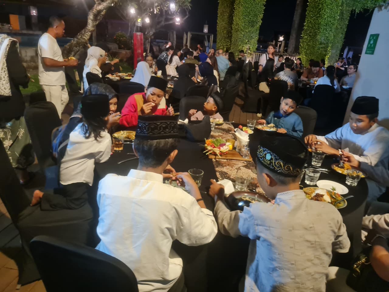 Anak-anak itu datang dengan wajah ceria. Busananya sopan, terlihat nyaman dan segar. Jika diajak bicara mereka sangat ramah, dan cepat berinteraksi. Setelah melakukan tegur sapa, mereka duduk santai sambil berbincang riang. Suasanapun bertambah akrab. Namun, ketika hari mulai semakin gelap, mereka kemudian melakukan doa bersama dirangkaikan dengan tausiyah singkat. Selanjutnya mereka bersama-sama menikmati berbagai hidangan.