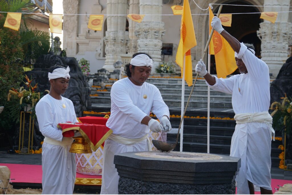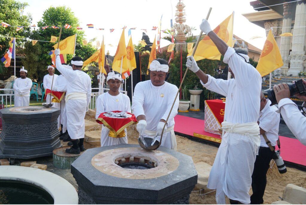 Hari itu, halaman Vihāra Buddha Sakyamuni, Denpasar dipenuhi nuansa putih dan kuning keemasan. Bendera-bendera Buddhis berkibar pelan di antara pepohonan, sementara para umat duduk bersila dalam keheningan. Di sisi lain halaman, para bhikkhu dari Saṅgha Theravāda Indonesia melantunkan paritta suci, mengiringi sebuah prosesi yang sarat makna: pengecoran Rupang Buddha Nusantara.