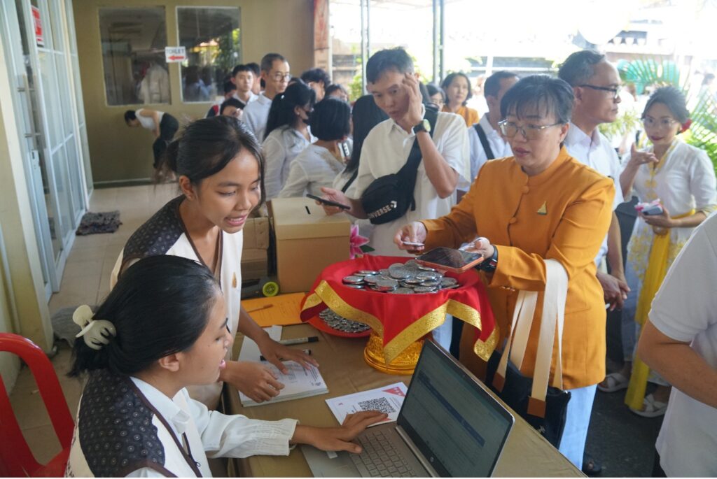 Di tengah kesibukan itu, para bhikkhu tetap melantunkan doa. Suasana terasa sakral.