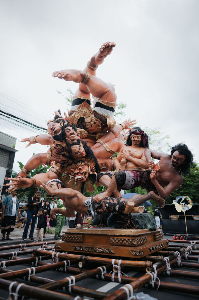 Sorak penonton terdengar setiap kali ogoh-ogoh itu diputar di Catus Pata Kota Negara. Di bawah cahaya matahari yang menerpa kulit para pembawa ogoh-ogoh, ekspresi wajah figur-figur pada patung tersebut terlihat semakin tajam—seolah benar-benar menggambarkan konflik sosial yang ingin disampaikan.