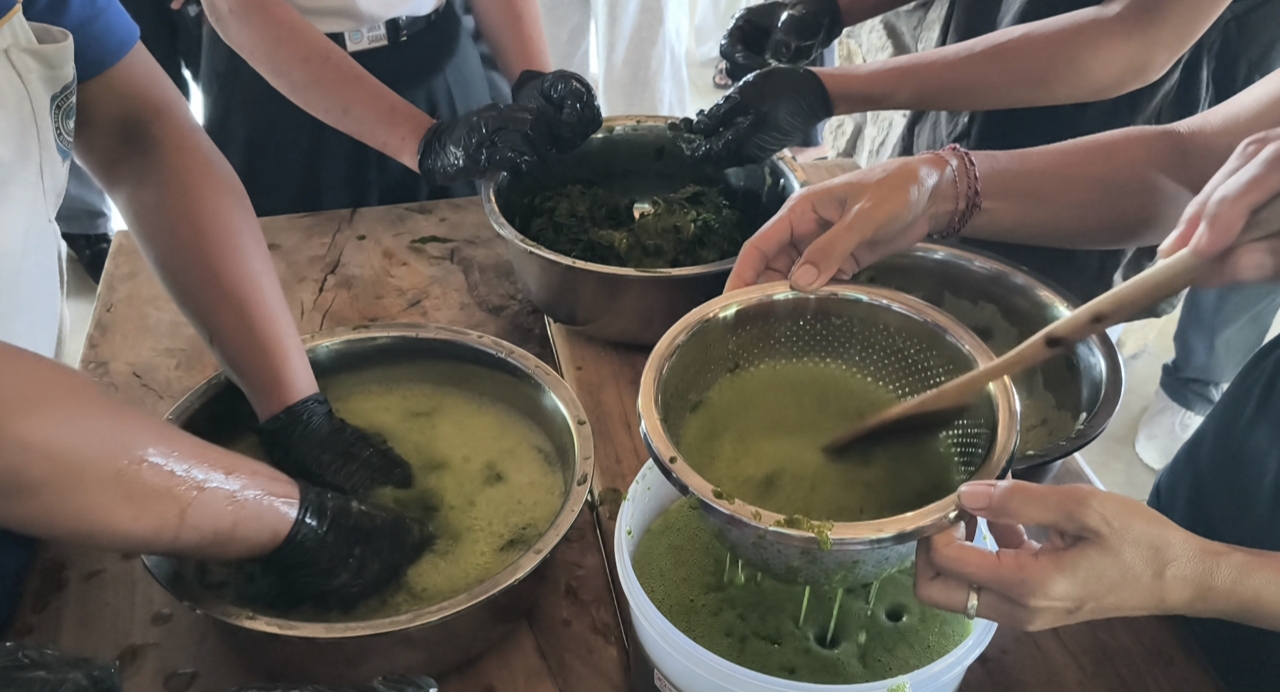 Selama ini taunya tinggal beli, minum, selesai. Ternyata di balik segelas daluman, ada proses remas-meremas yang cukup menguras tenaga dan kesabaran. Berbeda dengan beberapa peserta dari desa yang sudah lebih familiar.