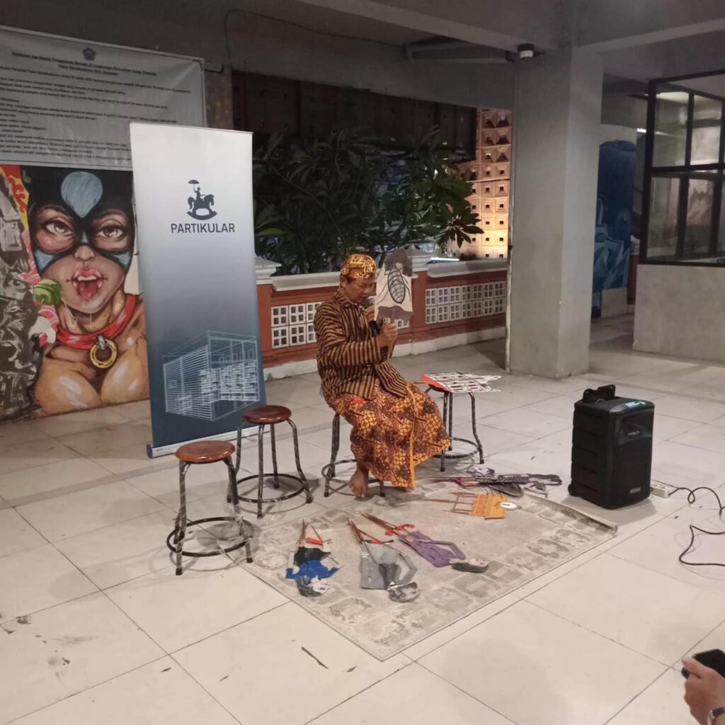 Dia menarasikan Metamorfosis yang aslinya berbahasa Jerman ke dalam bahasa Indonesia. Tangannya meraih beberapa tokoh dari Metamorfosis yang tergeletak di lantai, menggerakkan wayang, mengatur irama dan emosi. Namun, sayang sekali, audio yang keluar dari speaker terputus-putus dan hiruk-pikuk lalu lintas dari jalan raya, menghambat audien mendengarkan narasi dengan seksama. Namun tampilan pagelaran wayang tanpa layar (kelir) yang minimalis itu cukup menghangatkan sekitar limapuluhan audien lintas generasi.