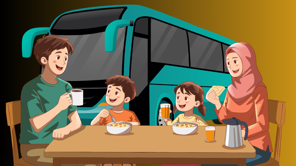 Sekitar pukul delapan malam, bus berhenti di rumah makan yang namanya terlalu optimistis: RM Nikmat Selalu. Di dalam, nasi sudah dingin, sambal terlalu berani, dan toiletnya mengandung unsur pendidikan karakter.