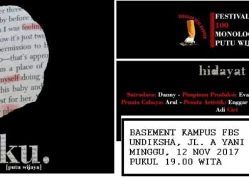 Read moreDetailsMINGGU malam, 12 November 2017, dilangsungkan pementasan ke 62, 63, 64 dari Festival Monolog Bali 100 Putu Wijaya. Tempatnya...